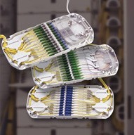 - Устройства контроля радиуса изгиба волокна направляют и защищают пигтейлы и обеспечивают допустимый радиус изгиба волокна