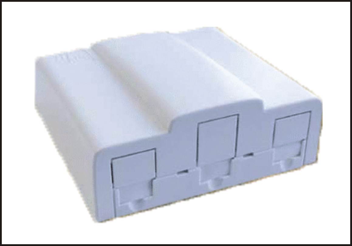 Оптическая настенная розетка имеет компактные размеры (86 x 86 мм) и выполнена из негорючего пластика (материал не выделяющий галогенов LSZH). Розетка обеспечивает надежную механическую защиту волокон и технологический доступ к пассивным элементам сети. В зависимости от требований, оптическая розетка может быть дополнена медножильными разъемами.